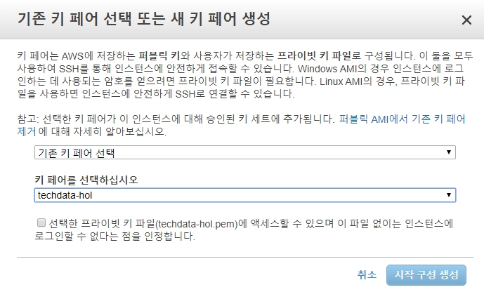 #.7 인스턴스의 키페어를 선택하고 체크박스를 선택한다.