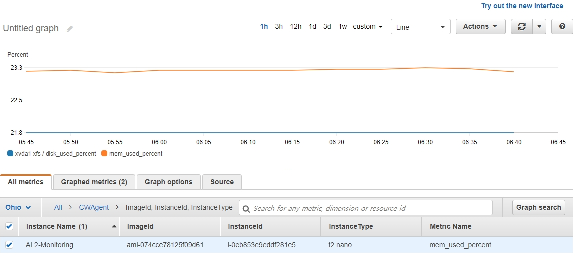 Cloudwacth > Metrics > All metrics > CWAgent 를 선택하자.