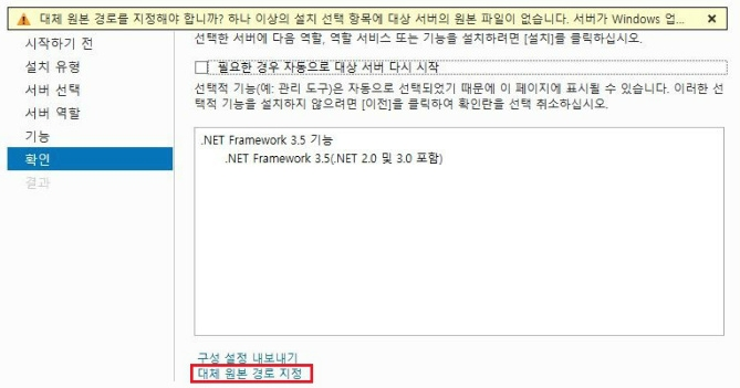 닷넷을 설치할 서버에서 윈도우 기능 선택 후 "대체원본경로지정" 에서 새로 연결한 EBS 볼륨의 경로로 지정하면 된다.
