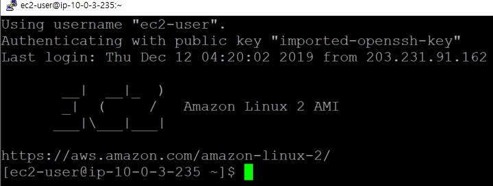 For Amazon Linux 2 or the Amazon Linux AMI, the user name is ec2-user.