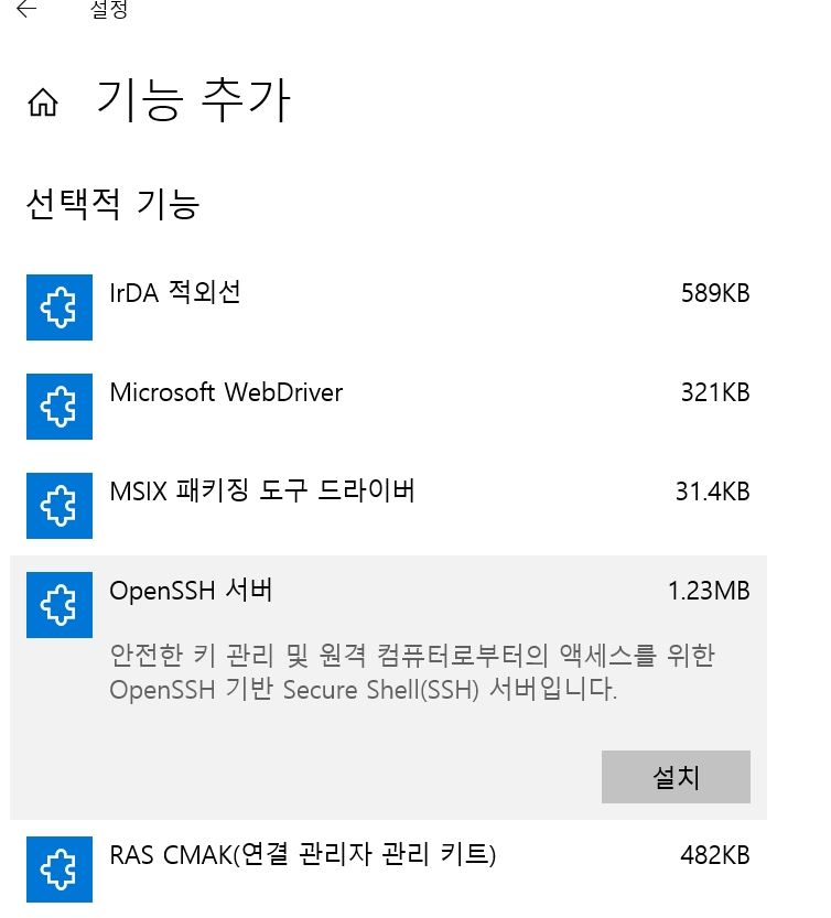 <OpenSSH 클라이언트가 설치된 화면>