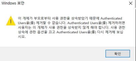 상속에 대한 권한이 모두 없어지고, [확인]을 클릭한다.